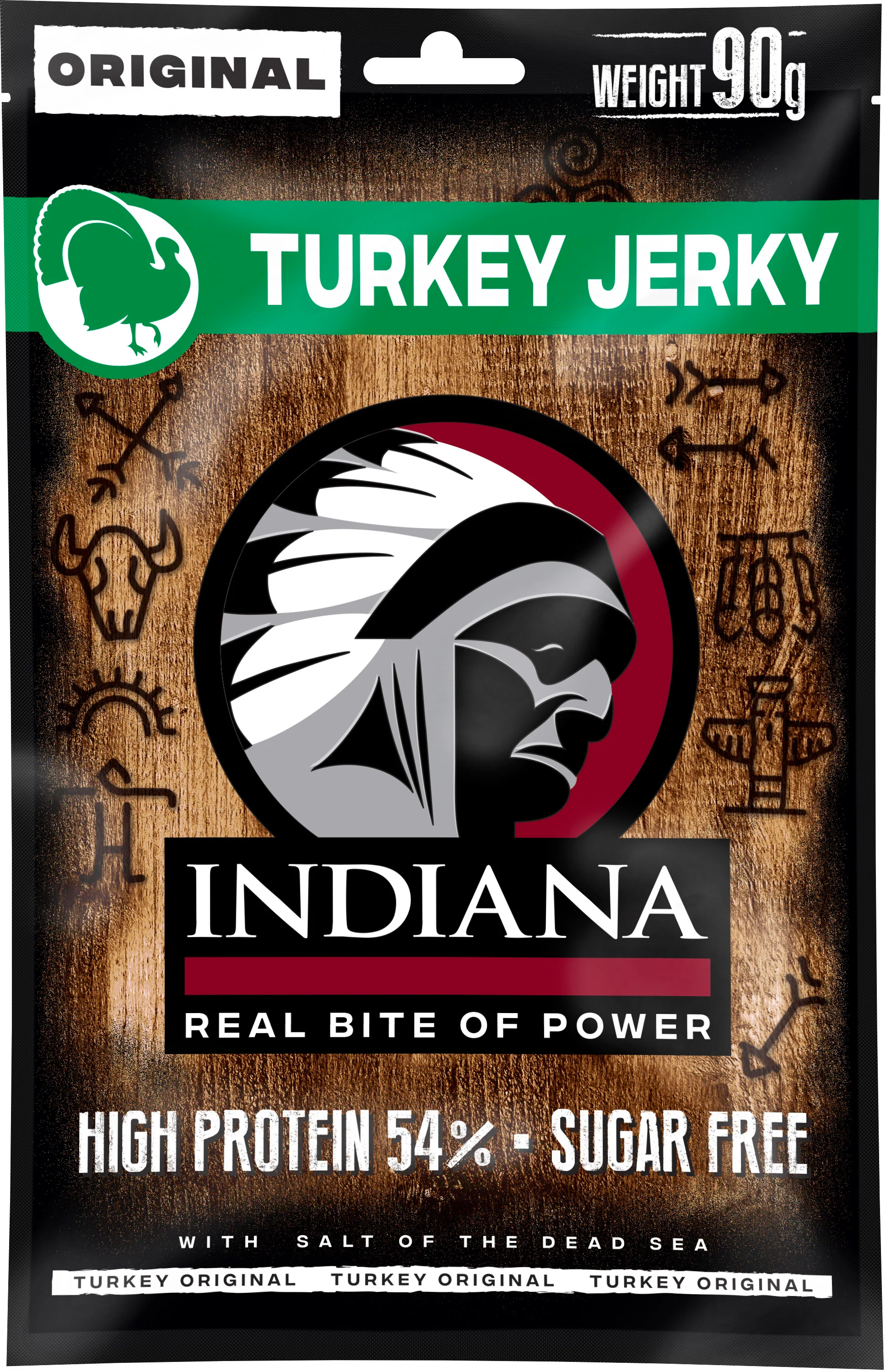 Indiana Jerky Turkey Original is a traditional style of jerky but made from turkey! Perfect if you want to reduce your red meat consumption. High in protein 46% which makes it a great protein snack. Sugar free.